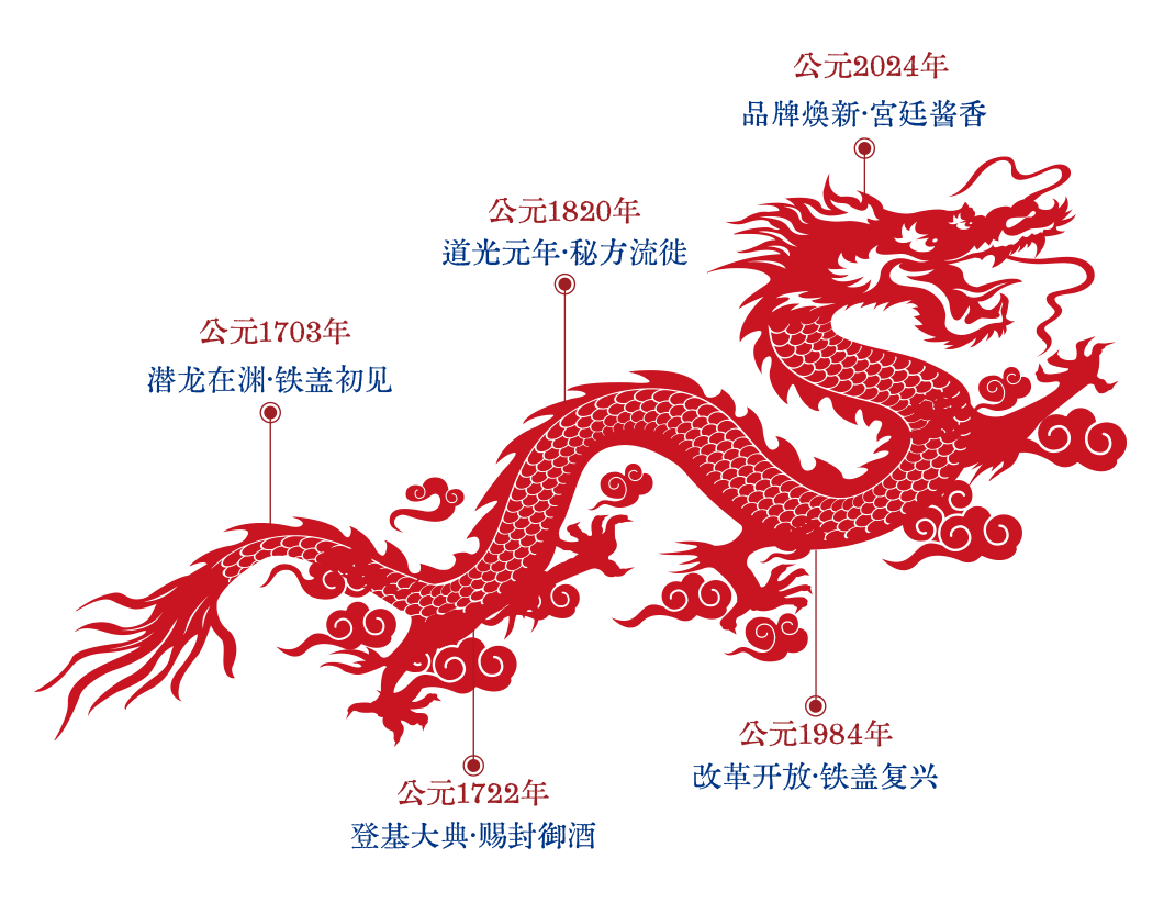 “雍正铁盖”根植清宫酿酒礼制,以“敬天、尊祖、奉国、宴宾”为文化内核。 品牌美学融龙腾御云、宫廷章纹、皇袍旒冕、御书钮章等元素,赋予每一杯酒以“皇家之礼”的尊崇感。